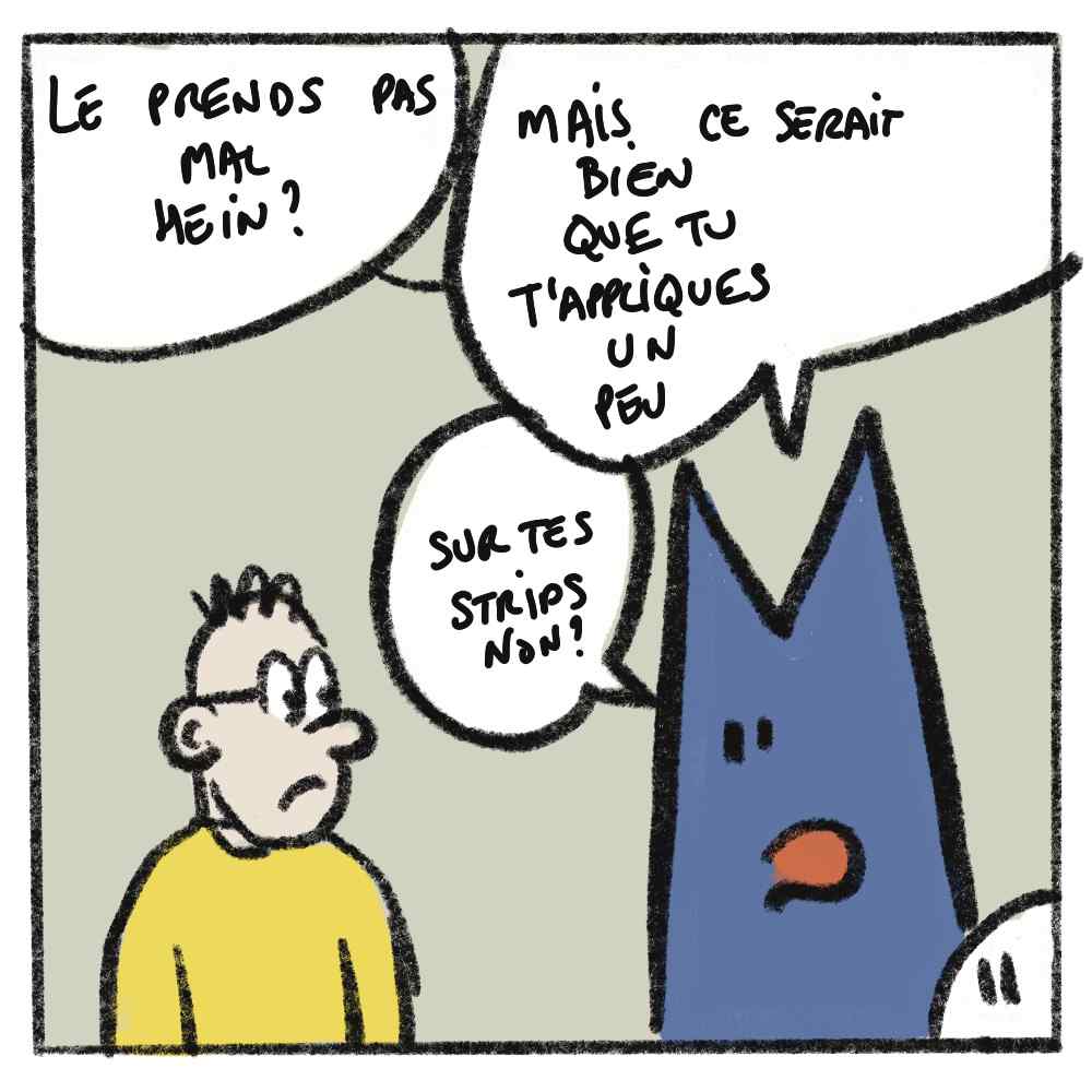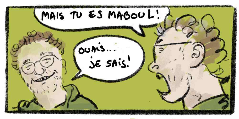 Travailler à plusieurs permet de trouver des idées qu’on n’aurait pas soupçonnées avant même de prendre un crayon. C’est cette façon de voir la vie qui me plait. Je me sens capable d’illustrer ce qui se présente devant mes yeux, du moment qu’on s’en donne les moyens.