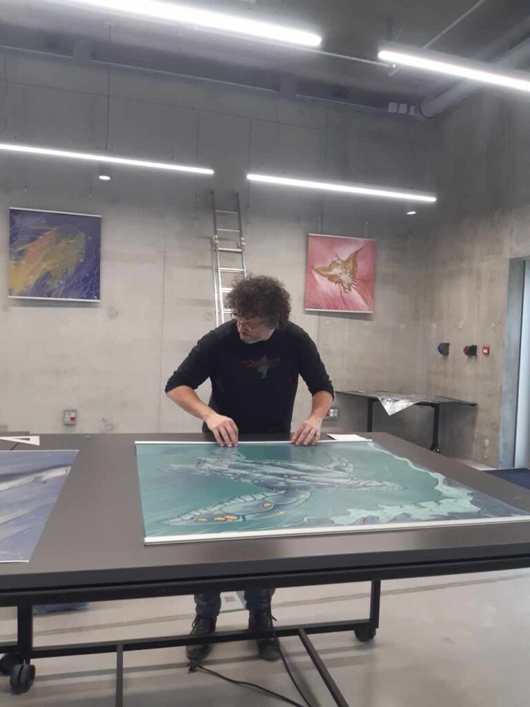 Chaque œuvre devient un fragment d’océan inventé, une présence silencieuse qui transforme l’espace et le regard.