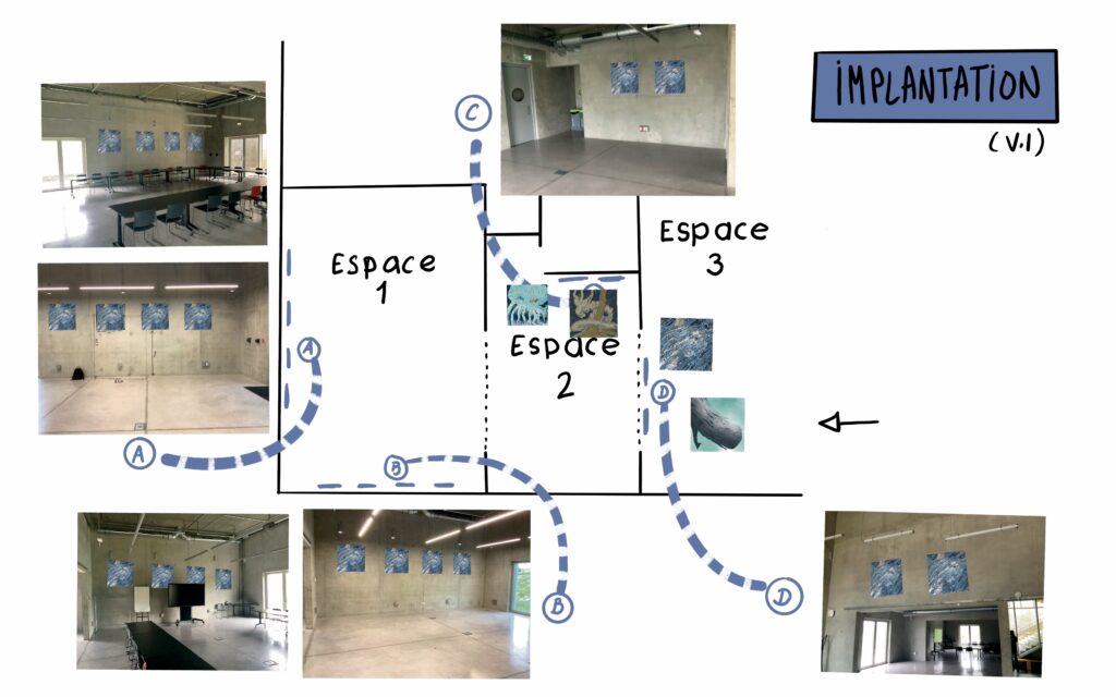 Ainsi est née l’exposition « Les Monstres marins« , un bestiaire d’espèces plus ou moins imaginaires, d’animaux étranges et lumineux, surgissant des profondeurs pour habiter les murs.